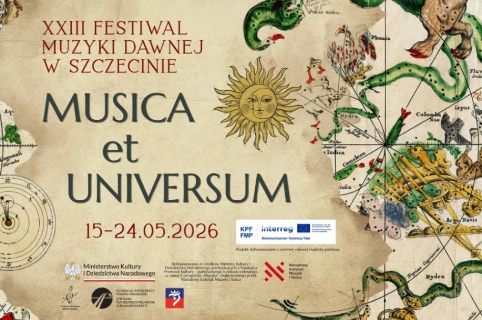 Musica et Universum – XXIII Festiwal Muzyki Dawnej w Szczecinie odbędzie się w dniach 15–24 maja 2026 roku. Tegoroczna edycja, inspirowana ideą uniwersum, zaprasza w podróż przez kultury i epoki – od bizantyjskich śpiewów, przez barokowe refleksje kosmiczne,  po muzykę Johna Dowlanda. W programie znajdzie się także wielokulturowy projekt „Siedem barw Orientu” oraz finałowa „Scena Inspiracji” promująca młodych artystów. Koncert inauguracyjny Festiwalu odbędzie się w Cerkwi św. Mikołaja w Szczecinie. Innych można będzie wysłuchać w Sali Koncertowej Akademii Sztuki.